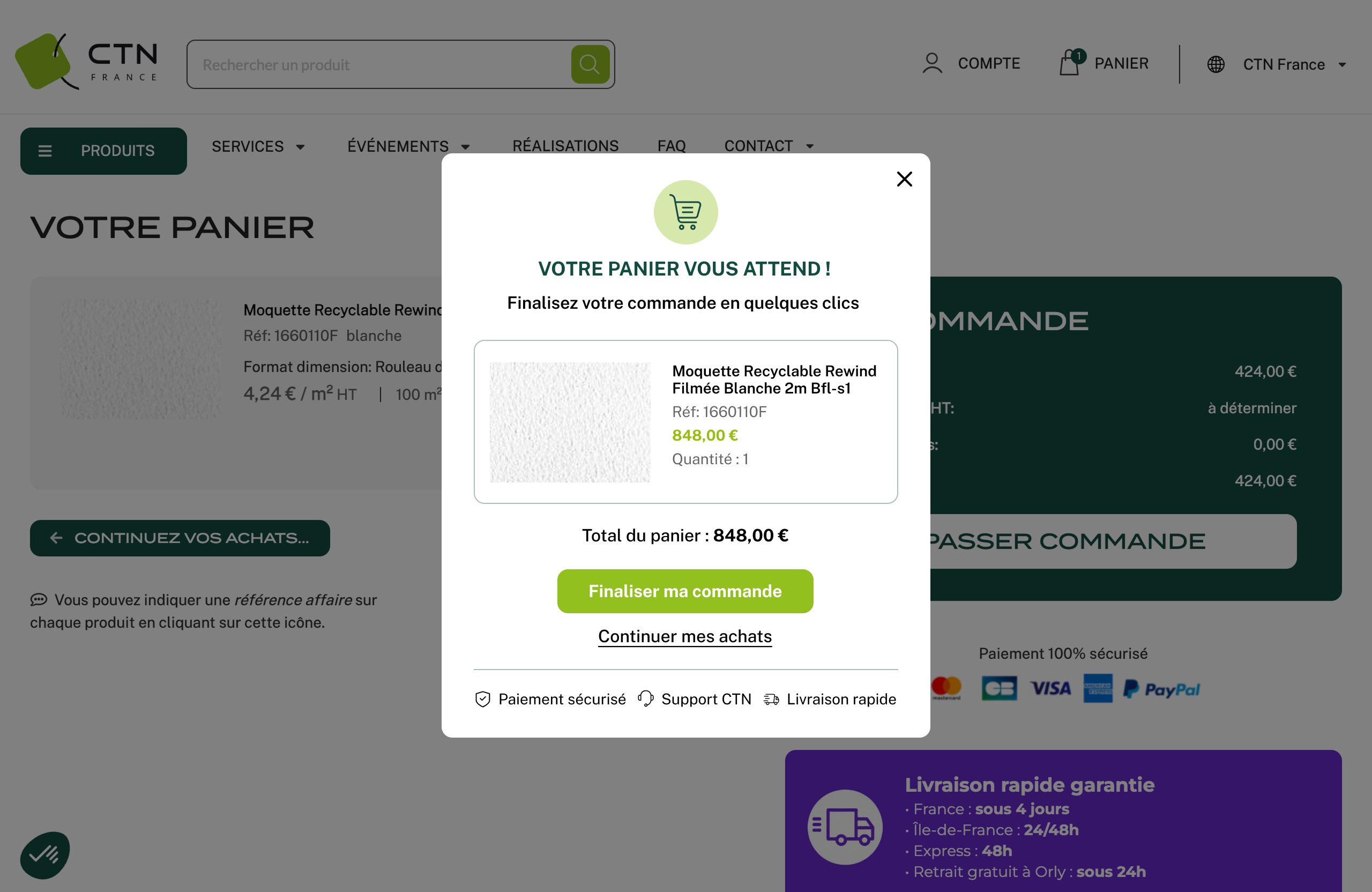 Pop-up shopping cart reminder