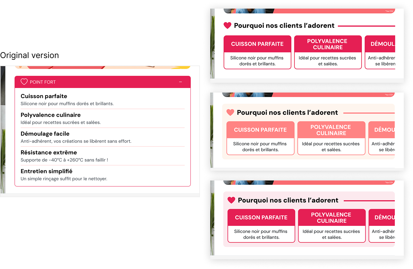For our client Guy Demarle, we proposed an A/B/C test to highlight the strengths of the product sheet.