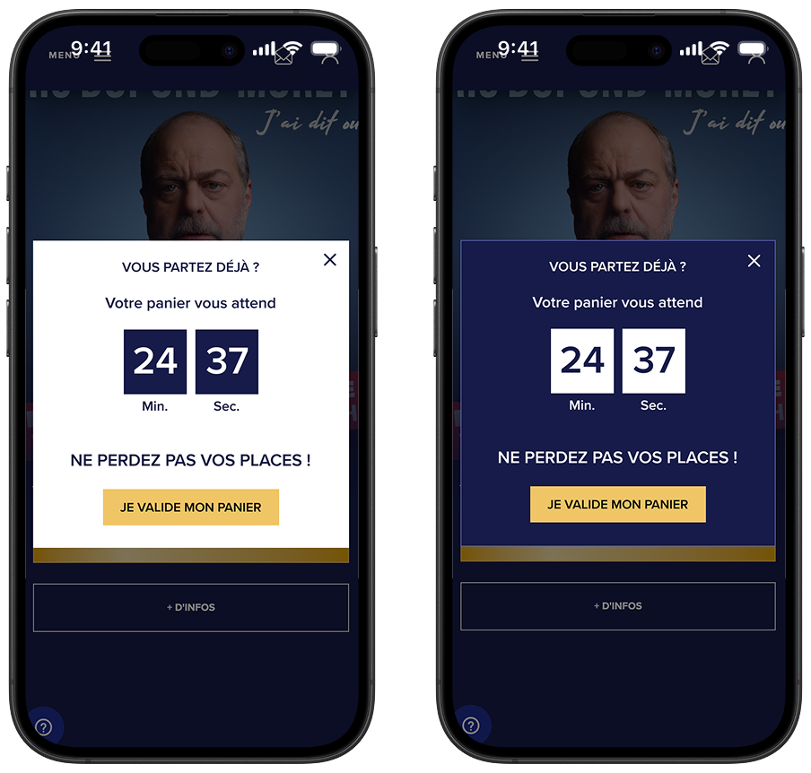 For our client Fimalac, we set up an A/B test of a retention pop-in to remind visitors how much time they have to confirm their shopping cart.